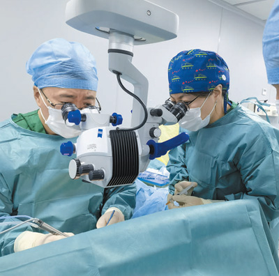 北大人民醫(yī)院主任醫(yī)師侯憲如(左)與該院眼科主治醫(yī)師孟慶娛共同為烏茲別克斯坦患者進行白內障手術。