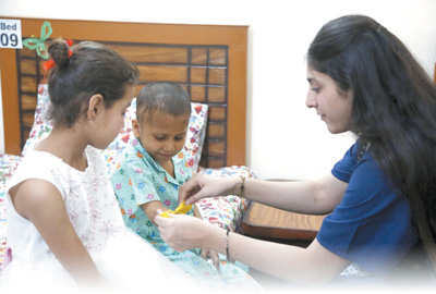 考慮到兒童病患的特殊性,“小家”一直將孩子們的心理疏導作為志愿工作的重點。“孩子們的心理狀態(tài)很重要?!薄靶〖摇卑头截撠熑颂K比婭·阿德南說。阿德南有30多年的兒童公益服務經(jīng)歷,在她和巴中兩國同事的引導下,孩子們相互鼓勵支持,在閑暇時制作各種手工藝品布置“小家”。