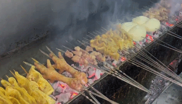 烤豬手、烤繭蛹、烤韭菜、烤蒜苔……