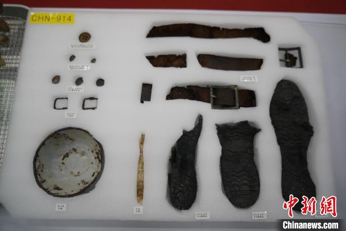 當(dāng)?shù)貢r(shí)間11月22日上午,第十批在韓中國人民志愿軍烈士遺骸裝殮儀式在韓國舉行。圖為裝殮儀式現(xiàn)場拍攝的部分志愿軍烈士遺物。中新社記者 劉旭 攝