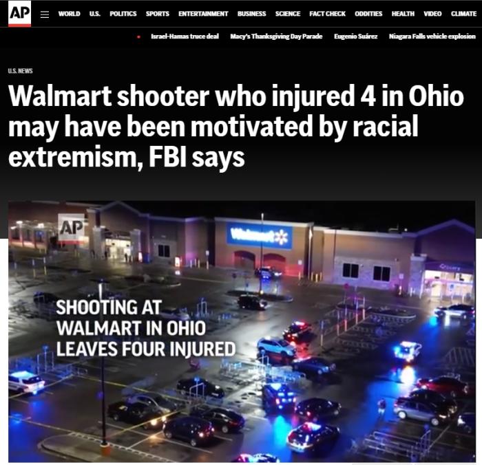 美國(guó)聯(lián)邦調(diào)查局:沃爾瑪槍案嫌犯或受極端種族主義驅(qū)使
