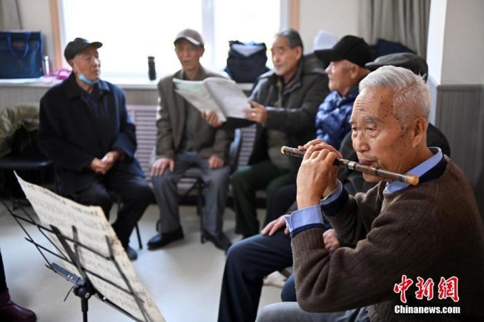 圖為11月27日,甘肅省蘭州市七里河區(qū)建蘭路街道吳家園社區(qū)養(yǎng)老服務(wù)中心內(nèi),老人們在社區(qū)食堂就餐后進(jìn)行合唱練習(xí)。 中新社記者 九美旦增 攝