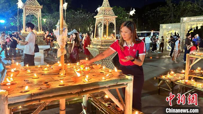 中新網(wǎng)曼谷11月28日電(李映民 趙婧楠)“月圓之夜,河水上漲,青年男女載歌載舞漂水燈,漂水燈,幸福將陪伴你我……”伴隨著悠揚(yáng)的古典樂曲,泰國(guó)古城清邁的濱河邊,民眾穿著傳統(tǒng)服裝,手里捧著精心制作的水燈,放到河面上,隨著水流緩緩漂去……