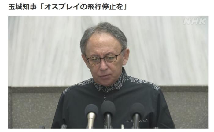 玉城表示,“正因沒有正視‘魚鷹’的危險性,才釀成了如此嚴(yán)重的事故,實在令人遺憾”,他強調(diào)目前非常擔(dān)心“魚鷹”在民用區(qū)域和民用機場起降成為常態(tài),呼吁駐日美軍立即停飛“魚鷹”,直至安全問題徹底解決。