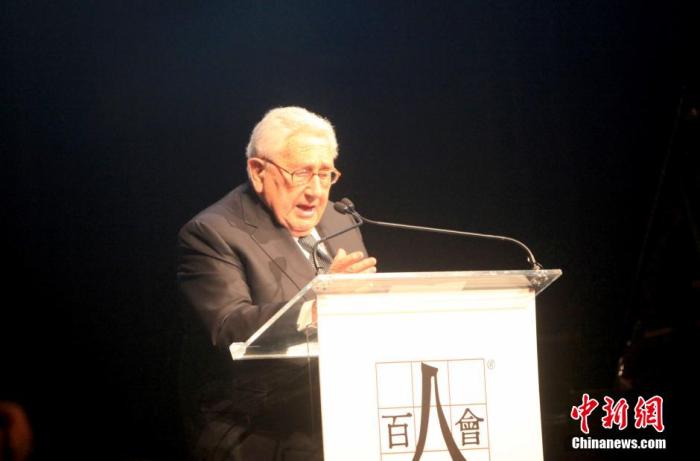 資料圖:美國前國務(wù)卿基辛格出席在紐約舉行的美國百人會(huì)成立25周年頒獎(jiǎng)晚宴并發(fā)表演講。中新社發(fā) 阮煜琳 攝
