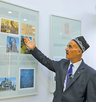 在位于撒馬爾罕的兀魯伯天文臺,講解員介紹中烏在天文學等領域的交流歷史。