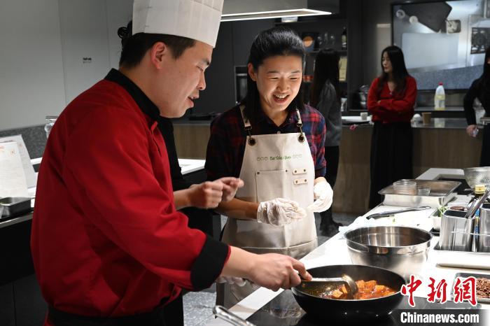 活動中,中心烹飪教師邱恒星教授了麻婆豆腐和小炒肉的烹飪技巧。在正式烹飪教學(xué)開始前,邱恒星詳細(xì)介紹了兩道美食的典故和由來。之后在介紹完食材準(zhǔn)備、烹飪要點、注意事項等后,邱恒星分步驟進(jìn)行實際操作,為學(xué)員們烹飪出兩道菜品,并讓大家品嘗。隨后學(xué)員們按照菜譜及中心老師的示范,自己動手烹飪菜肴,成功完成菜品制作。