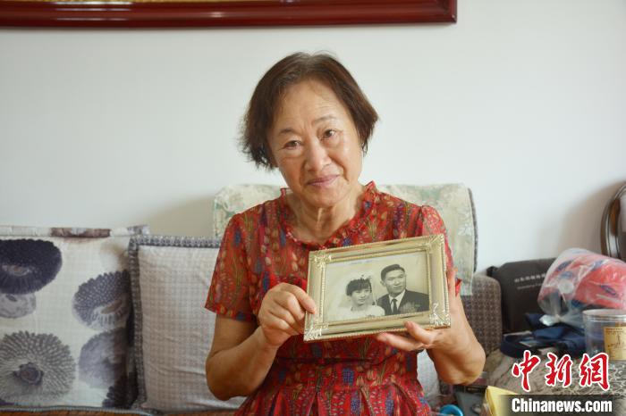 資料圖:沈玉英展示和丈夫的結(jié)婚照。呂妍 攝