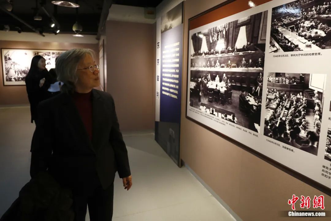 2019年12月13日,《正義的審判——紀(jì)念東京審判宣判71周年專題展》在中國(guó)人民抗日戰(zhàn)爭(zhēng)紀(jì)念館開幕,270余幅珍貴歷史照片再現(xiàn)“東京審判”。圖為遠(yuǎn)東國(guó)際軍事法庭中國(guó)法官梅汝璈之女梅小侃參觀專題展。富田 攝