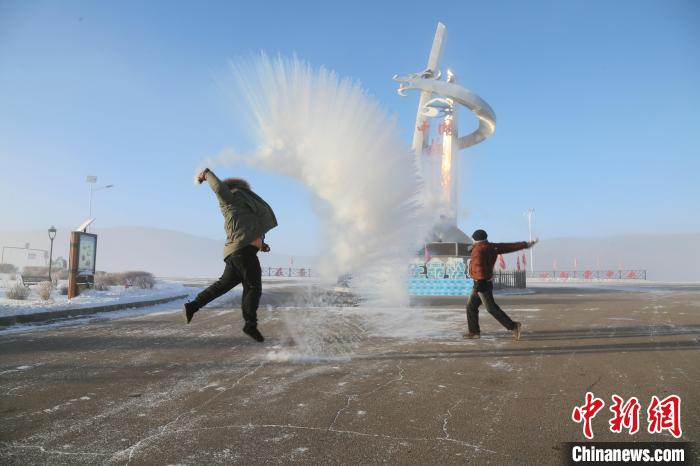 12月13日,“中國最冷小鎮(zhèn)”最低氣溫降至-45.1℃,游客在體驗“潑水成冰”。馮宏偉 攝