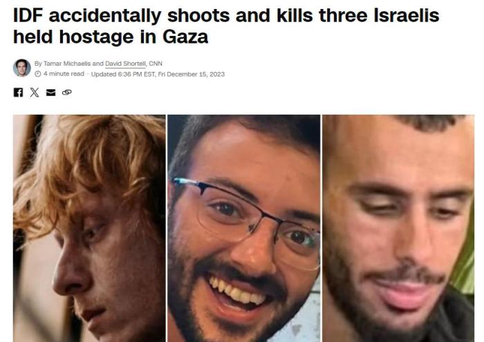 據(jù)美國有線電視新聞網(wǎng)(CNN)報(bào)道,以色列國防軍發(fā)言人赫格里在新聞發(fā)布會上表示,“在謝賈亞的戰(zhàn)斗中,以色列國防軍錯誤地將三名以方人質(zhì)視為威脅。軍隊(duì)向其開火,他們被打死?!?/p>