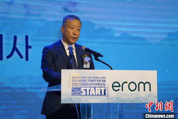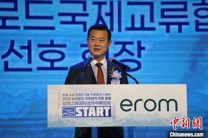 圖為韓中絲綢之路國際交流協(xié)會會長李先虎致辭。中新社記者 劉旭 攝