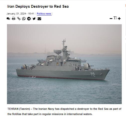 中新網(wǎng)1月2日電 據(jù)伊朗塔斯尼姆通訊社當(dāng)?shù)貢r(shí)間1日報(bào)道,在紅海緊張局勢加劇之際,伊朗的“厄爾布爾士”號軍艦已經(jīng)穿過曼德海峽,進(jìn)入紅海。