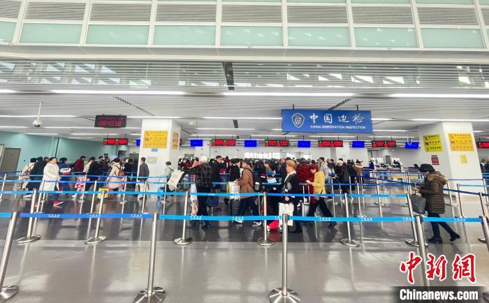 邊檢民警正在使用“入境簡(jiǎn)化模式”查驗(yàn)旅客出入境證件。(盧姣 攝)