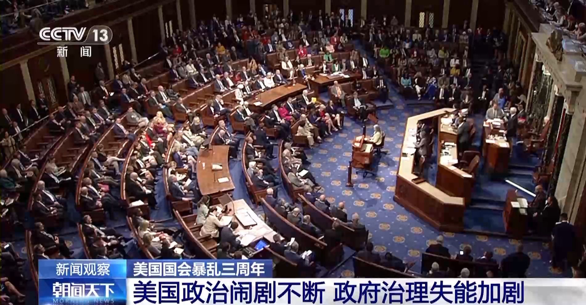 如今,美國國會暴亂事件已經(jīng)過去三年,國會大廈這一“美國政治的象征”成了美國民主、共和兩黨相互攻訐、上演一出出政治鬧劇的舞臺。在美國政治極化、黨爭加劇的環(huán)境下,美國經(jīng)濟社會議程遲滯,政府治理失能現(xiàn)象惡化,美國社會沉疴難愈。