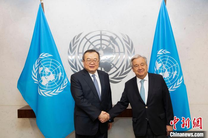 當(dāng)?shù)貢r間1月9日,中共中央對外聯(lián)絡(luò)部部長劉建超在紐約聯(lián)合國總部會見聯(lián)合國秘書長古特雷斯,就中國同聯(lián)合國合作、全球文明倡議以及雙方共同關(guān)心的國際和地區(qū)問題交換看法。 中新社記者 廖攀 攝