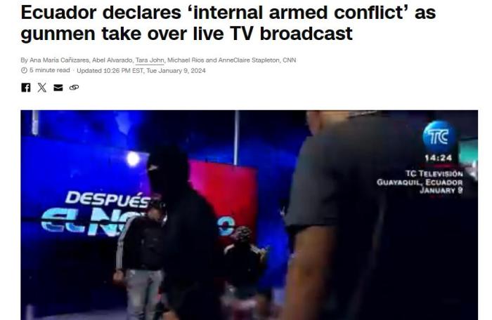 據(jù)美國有線電視新聞網(wǎng)(CNN)報道,該法令發(fā)布前不久,一伙武裝人員闖入厄瓜多爾西南部瓜亞基爾市一家電視臺,并挾持電視臺工作人員。