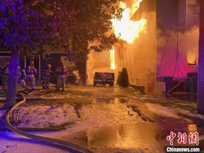 當(dāng)?shù)貢r間1月14日,消防員試圖撲滅發(fā)生在美國俄勒岡州波特蘭東北部一座教堂的大火。(波特蘭消防救援部門供圖)