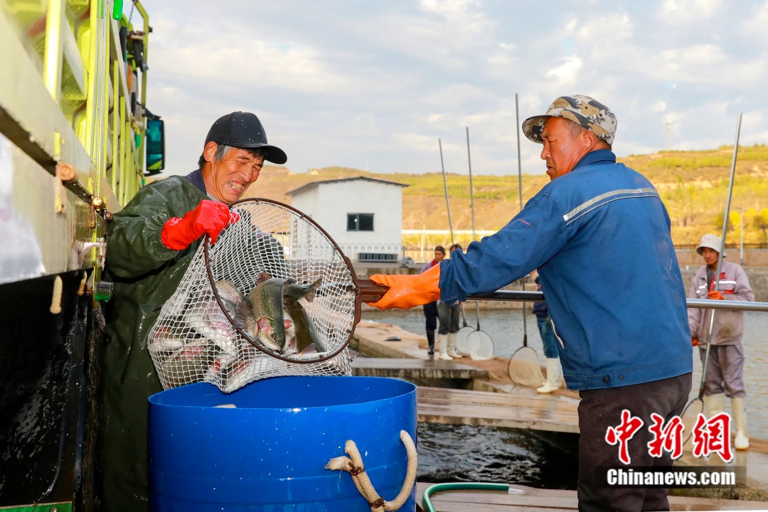 工人正在三文魚養(yǎng)殖場忙碌。 沁水縣融媒體中心供圖
