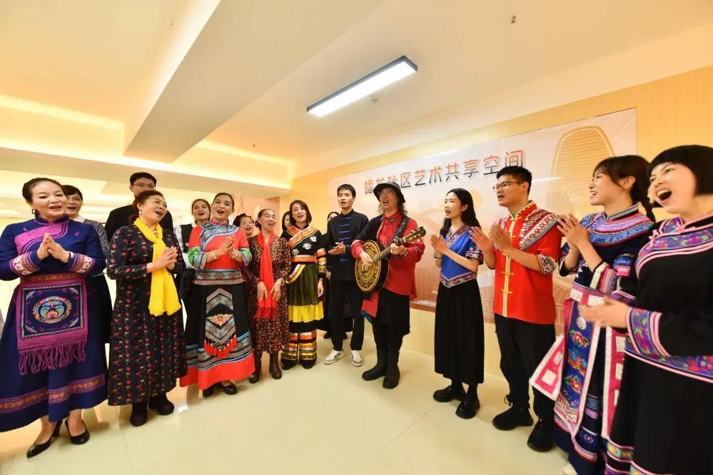 ▲在蟠龍社區(qū)新時代文明實踐站,居民在唱山歌。新華社記者 黃孝邦攝