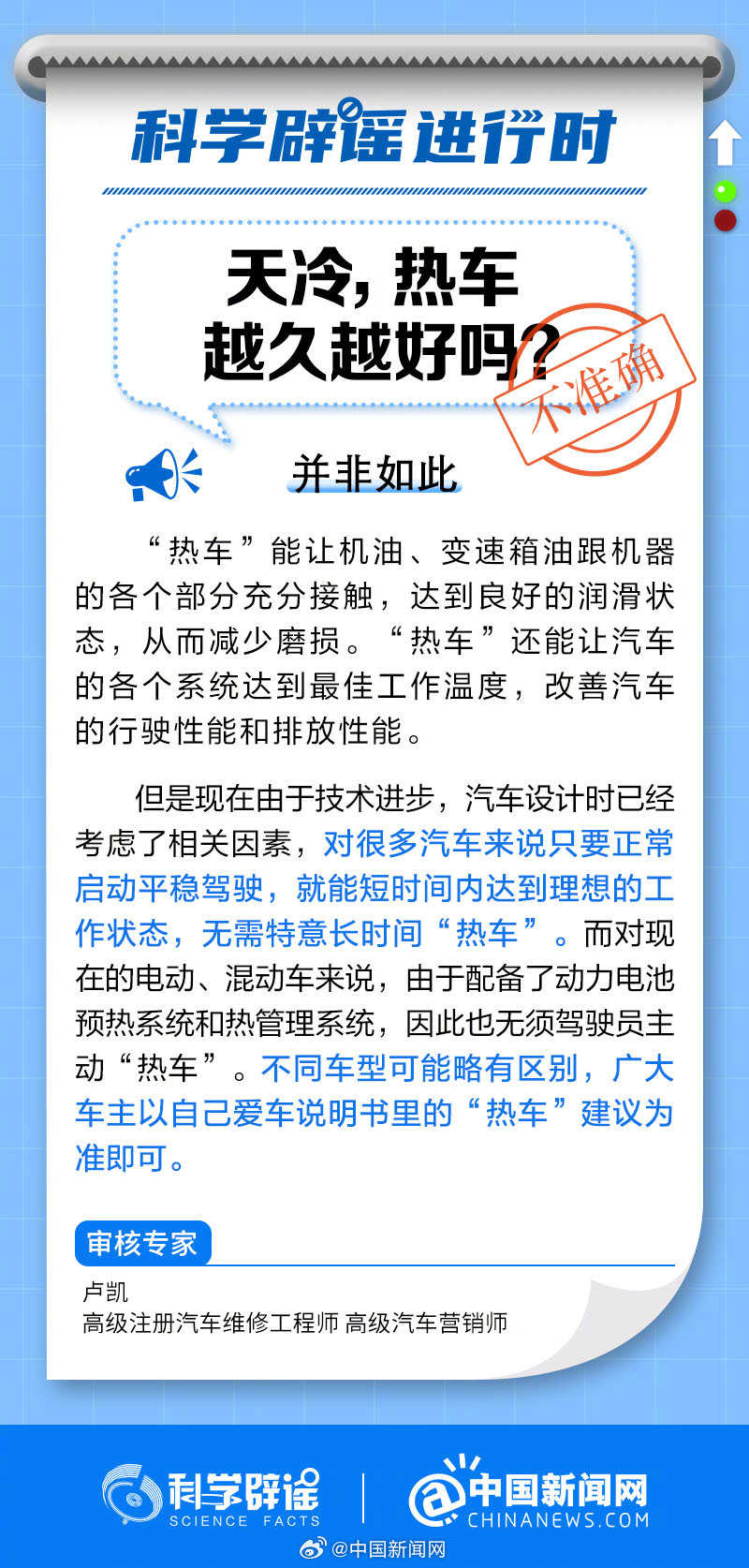 中新網(wǎng)1月23日電 “熱車”能讓機(jī)油、變速箱油跟機(jī)器的各個部分充分接觸,達(dá)到良好的潤滑狀態(tài),從而減少磨損?!盁彳嚒边€能讓汽車的各個系統(tǒng)達(dá)到最佳工作溫度,改善汽車的行駛性能和排放性能。但是現(xiàn)在由于技術(shù)進(jìn)步,汽車設(shè)計(jì)時已經(jīng)考慮了相關(guān)因素,對很多汽車來說只要正常啟動平穩(wěn)駕駛,就能短時間內(nèi)達(dá)到理想的工作狀態(tài),無需特意長時間熱車。(來源:@科學(xué)辟謠 @中國新聞網(wǎng))
