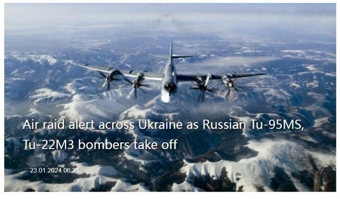 中新網(wǎng)1月23日電 據(jù)烏通社23日報道,烏克蘭全境拉響防空警報。報道稱,烏克蘭空軍記錄到當(dāng)?shù)貢r間23日早些時候,多架圖-95轟炸機(jī)和圖-22轟炸機(jī)從俄羅斯起飛。