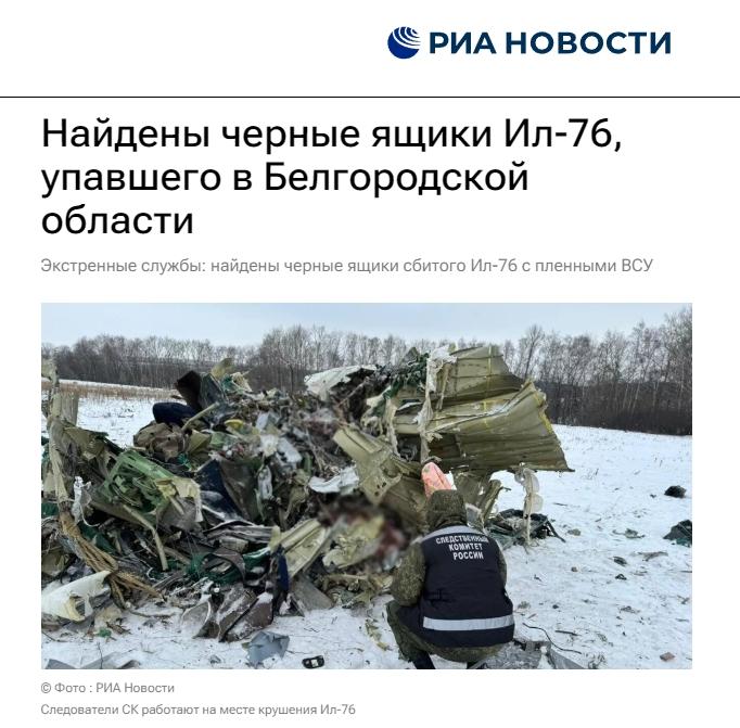 中新網(wǎng)1月25日電 據(jù)俄新社當?shù)貢r間25日報道,在俄羅斯別爾哥羅德州墜毀的伊爾-76運輸機的兩個黑匣子目前均已找到,已移交給調(diào)查人員。