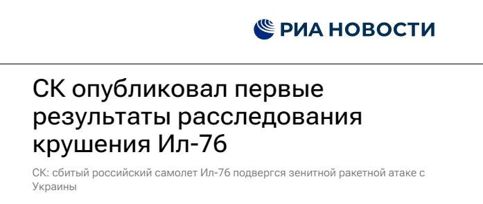 事發(fā)后,俄外交部發(fā)表聲明稱,烏方十分清楚交換行動(dòng),了解運(yùn)送被俘人員的方式和路線。俄方稱,“針對(duì)飛機(jī)的襲擊是一場(chǎng)蓄意行動(dòng),這表明烏克蘭當(dāng)局缺乏契約精神?!倍砻?5日援引俄羅斯行動(dòng)部門(mén)的消息稱,在墜毀地點(diǎn)發(fā)現(xiàn)了疑似導(dǎo)彈的碎片。