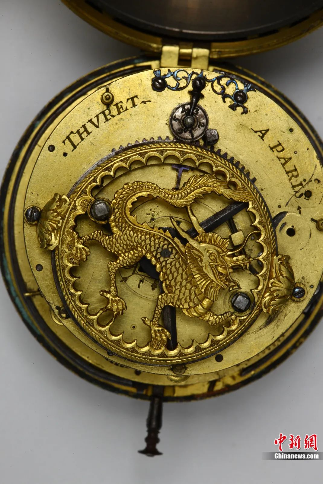 中新社記者:這只出自法國(guó)宮廷御用鐘表匠之手的懷表,為何會(huì)在內(nèi)部雕刻中國(guó)龍的形象?