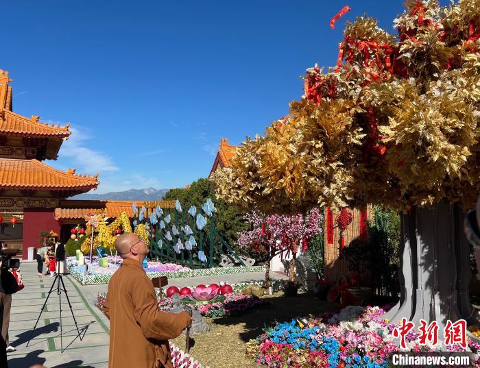 記者當(dāng)日在西來寺看到,大雄寶殿前,靈動(dòng)的“歡喜龍”主燈已搭建完成。平安燈會(huì)以“云水自在,祥和歡喜”為設(shè)計(jì)主題,祝福人們懷著喜悅的心情迎接新年。春節(jié)期間,寺院成佛大道兩旁還有龍?zhí)熳o(hù)佑、五福臨門行三好、百花齊放迎新春、諸事圓滿祈愿樹等景觀。