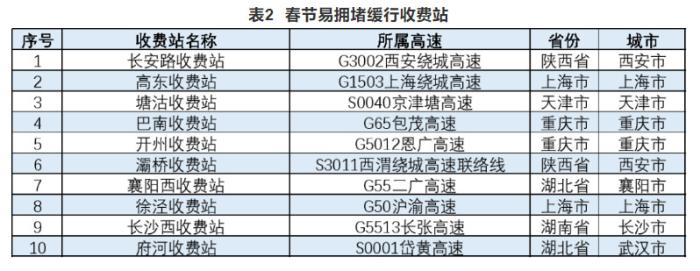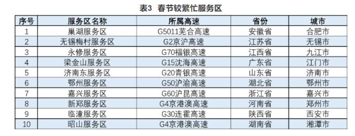 報告還公布了高速公路預(yù)計易發(fā)生擁堵緩行的路段、收費站以及較繁忙的服務(wù)區(qū)。