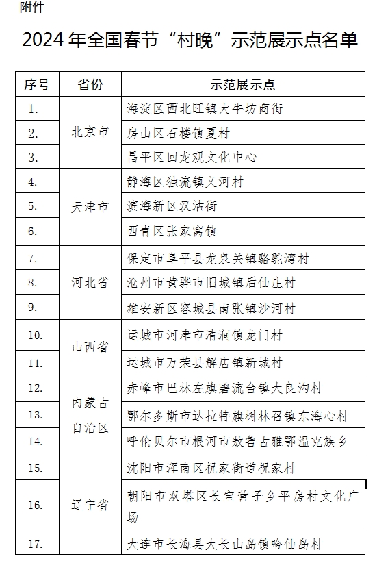 - 文旅部公布2024年春節(jié)“村晚”示范展示點(diǎn)名單