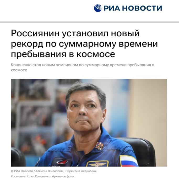 中新網(wǎng)2月4日電 據(jù)俄新社報(bào)道,俄羅斯聯(lián)邦航天局(Roskosmos)在社交媒體上發(fā)文稱,俄羅斯宇航員奧列格·科諾年科(Oleg Kononenko)于莫斯科時(shí)間4日打破了人類在太空停留總時(shí)長(zhǎng)的世界紀(jì)錄。