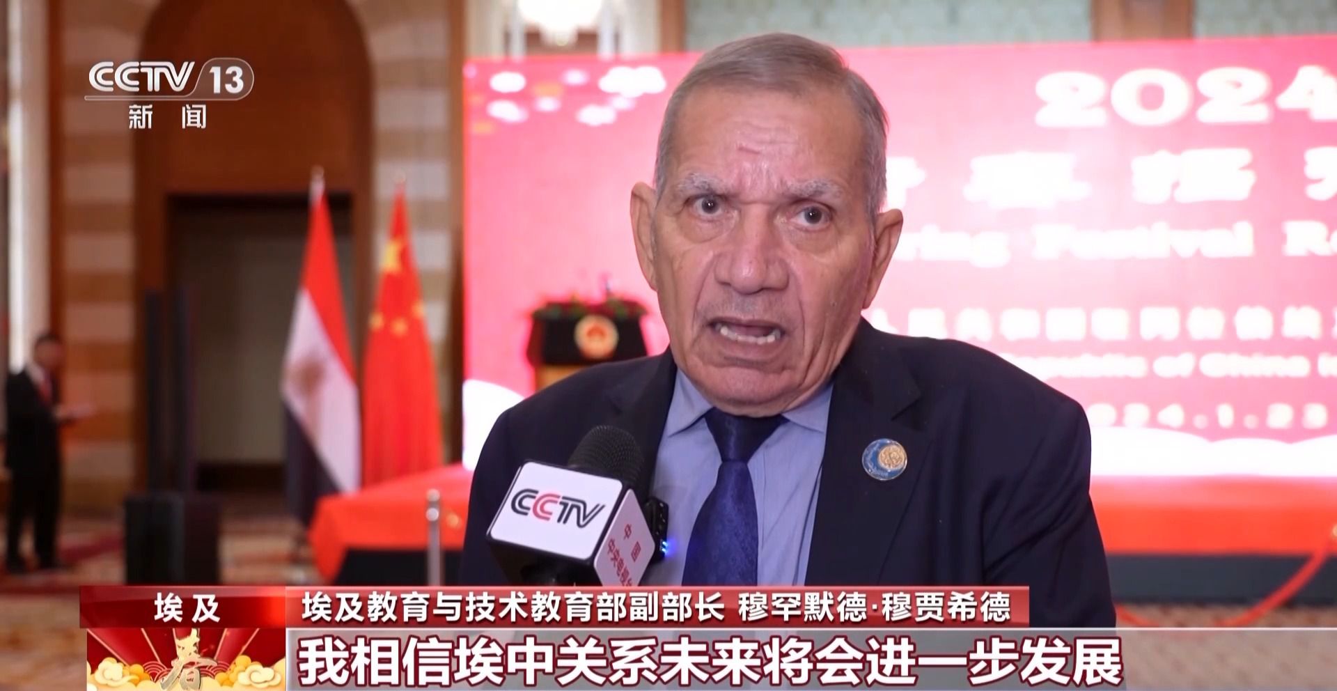 埃及教育與技術(shù)教育部副部長(zhǎng) 穆罕默德·穆賈希德:我相信埃中關(guān)系未來將會(huì)進(jìn)一步發(fā)展并實(shí)現(xiàn)更多合作,我想借此機(jī)會(huì)向中國人民致以春節(jié)的問候。