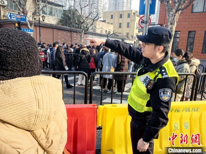 為確保節(jié)日期間開放活動安全有序,上海徐匯警方提前謀劃制定龍華古寺安保“一天一方案”。在2月9日至2月10日活動期間,徐匯警方對龍華西路(天鑰橋路—龍華路段)開展交通管制,在道路兩端路面搭建蛇形通道作為人群“蓄水池”,執(zhí)勤民警根據(jù)現(xiàn)場人流聚集情況,采取截流、限流、分流措施,確保人員有序入場。