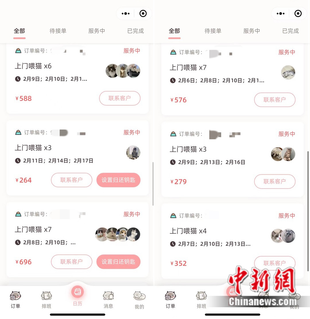 早在兩個(gè)月前,池女士就陸續(xù)接到了預(yù)約春節(jié)上門喂養(yǎng)的單子,到了1月底,由于訂單眾多,她不得不封單。“按次數(shù)的話有超過150單了,好幾天都是一天20單。”按節(jié)假日平均80/次的價(jià)格來算,這個(gè)春節(jié)她將收入過萬。