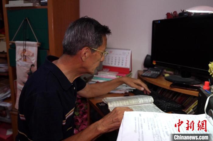 楊建仍然堅(jiān)持每天花費(fèi)兩三個小時進(jìn)行學(xué)習(xí)。梅鐿瀧 攝