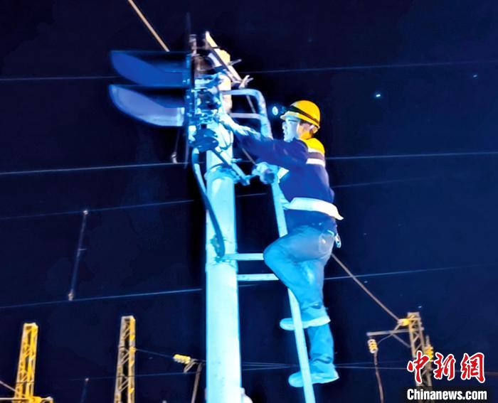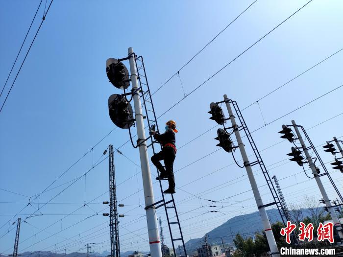 圖為安康東電務(wù)車(chē)間職工正在進(jìn)行高柱信號(hào)機(jī)檢修。王建滆攝