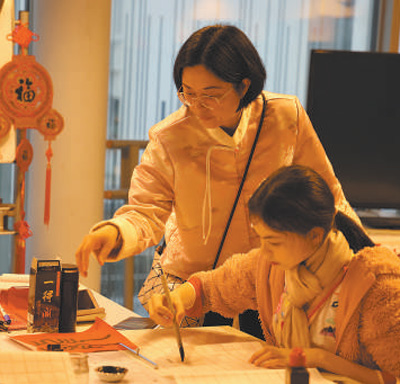 2月3日,在法國(guó)巴黎中國(guó)文化中心“走進(jìn)中心過(guò)大年”活動(dòng)中,學(xué)員體驗(yàn)中國(guó)書(shū)法。