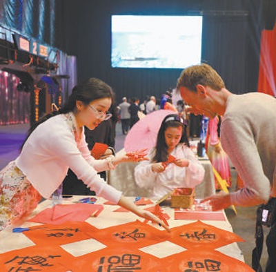“龍”“福”“春”……在書(shū)法剪紙展臺(tái)上,一幅幅書(shū)法作品傳遞著節(jié)慶的氛圍。當(dāng)?shù)鼐用窭獱柲闷鹨粡垺案!弊?,向工作人員詢問(wèn)寓意。拉莫爾就職的企業(yè)與中國(guó)有頻繁的業(yè)務(wù)往來(lái),他曾兩次到訪中國(guó)。他說(shuō):“中國(guó)文化博大精深,中國(guó)人有著強(qiáng)烈的文化認(rèn)同感。希望多多舉辦這樣的活動(dòng),讓更多人了解中國(guó)文化?!?/p>