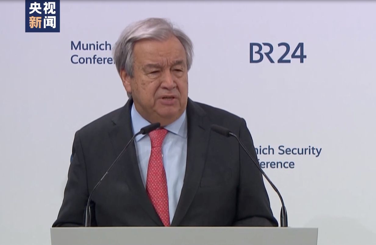 △2月16日,聯(lián)合國(guó)秘書長(zhǎng)古特雷斯在慕安會(huì)上發(fā)表開幕致辭(圖由總臺(tái)記者拍攝)