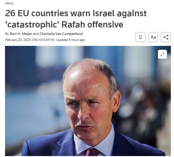 據(jù)報(bào)道,目前拉法已經(jīng)涌入了約150萬加沙地帶難民,愛爾蘭外長馬丁表示:“對(duì)拉法的進(jìn)攻絕對(duì)是災(zāi)難性的”。