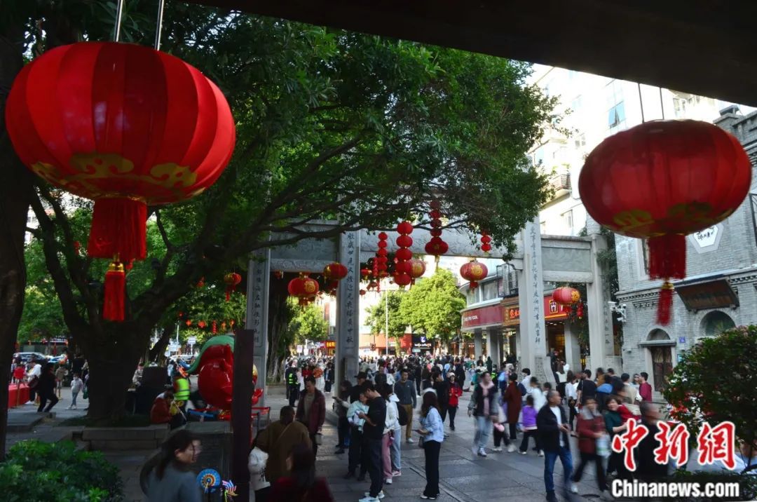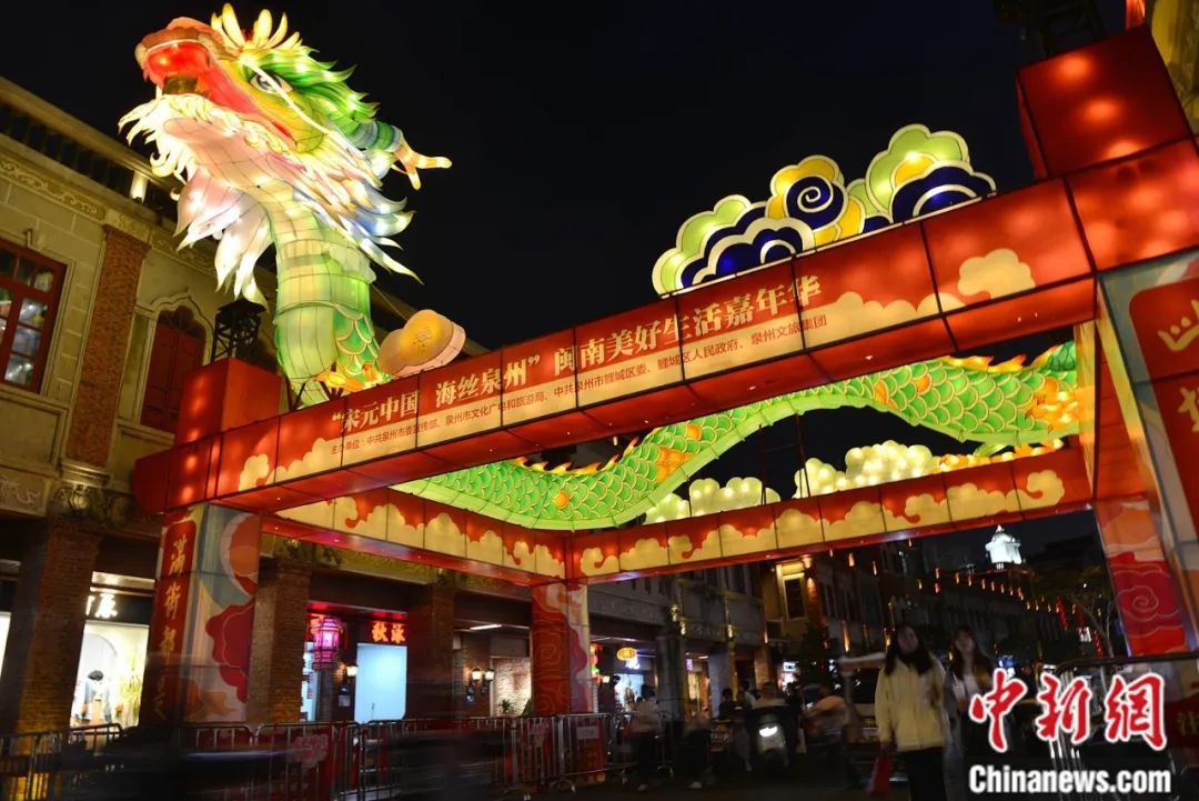 福州三坊七巷古街區(qū)游人如織,龍形燈飾點(diǎn)亮新春氛圍。中新社記者 王東明 攝