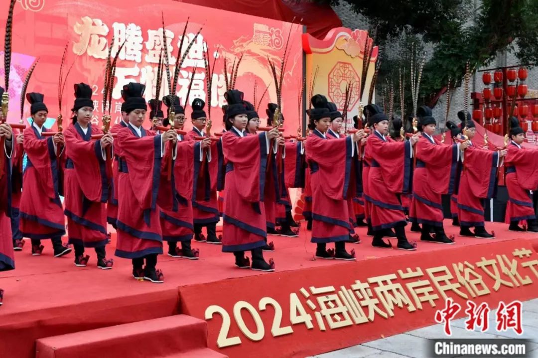 2024年海峽兩岸民俗文化節(jié)在福州市上下杭?xì)v史文化街區(qū)舉行,圖為佾舞表演。中新社記者 呂明 攝