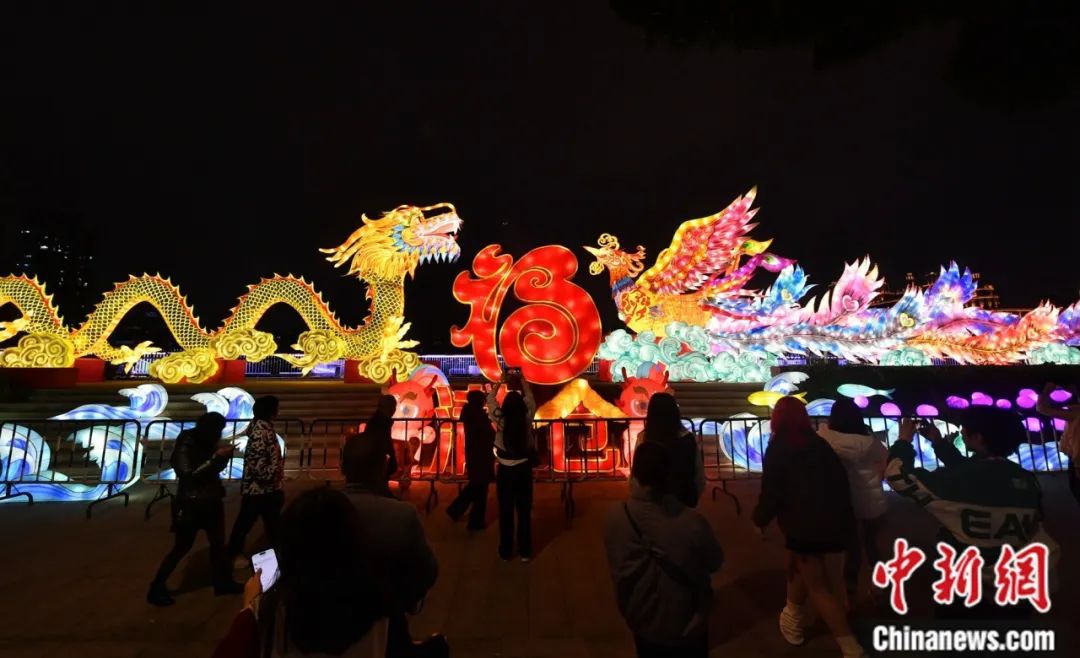 倉(cāng)前公園的“龍鳳呈祥”燈組