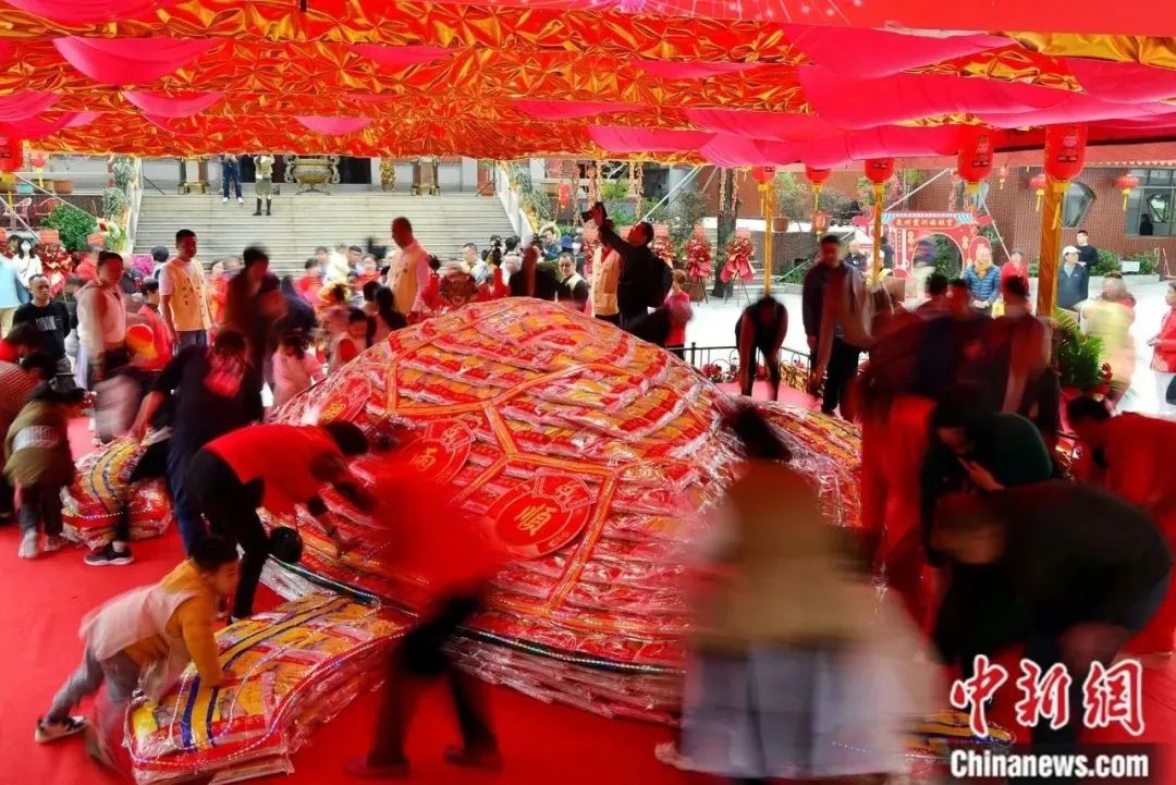 連城林坊游龍,村民們抬著色彩繽紛的大龍環(huán)著村道游走鬧新春。游大龍活動(dòng)是林坊林氏家族傳統(tǒng)文化藝術(shù)活動(dòng)的遺產(chǎn),有500多年歷史,意在祈求風(fēng)調(diào)雨順、國(guó)泰民安。中新社記者 王東明 攝