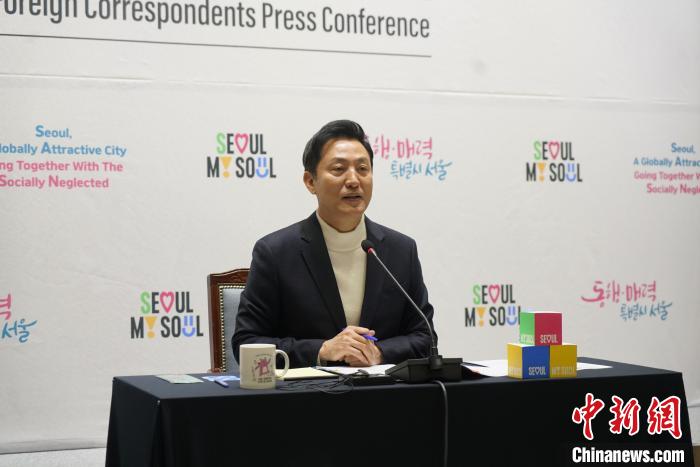 2月28日下午,首爾市長(zhǎng)吳世勛在首爾市廳舉行新年外媒記者會(huì)。中新網(wǎng)記者劉旭攝