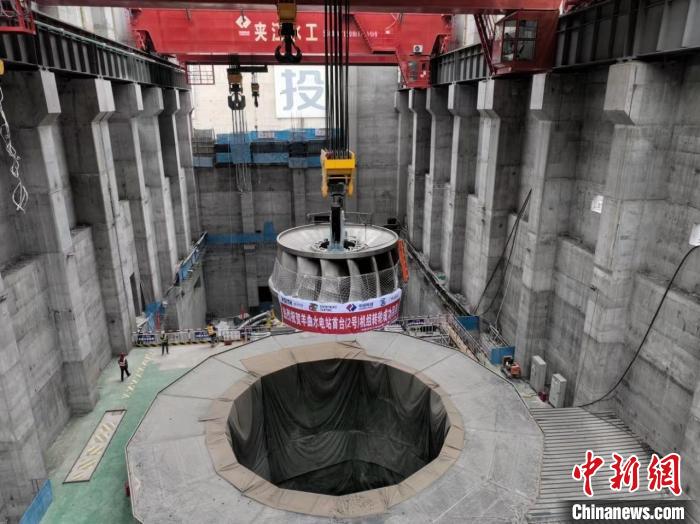 “轉(zhuǎn)輪是水輪發(fā)電機(jī)組產(chǎn)生電能的核心部件,被譽(yù)為水輪發(fā)電機(jī)組的‘心臟’。本次吊裝的轉(zhuǎn)輪由上冠、下環(huán)及15個(gè)葉片組裝焊接而成,最大直徑6.37米、高3.29米,吊裝總重約114噸,共歷時(shí)52分鐘吊裝完成?!秉S河公司羊曲籌建處主任楊云峰說。