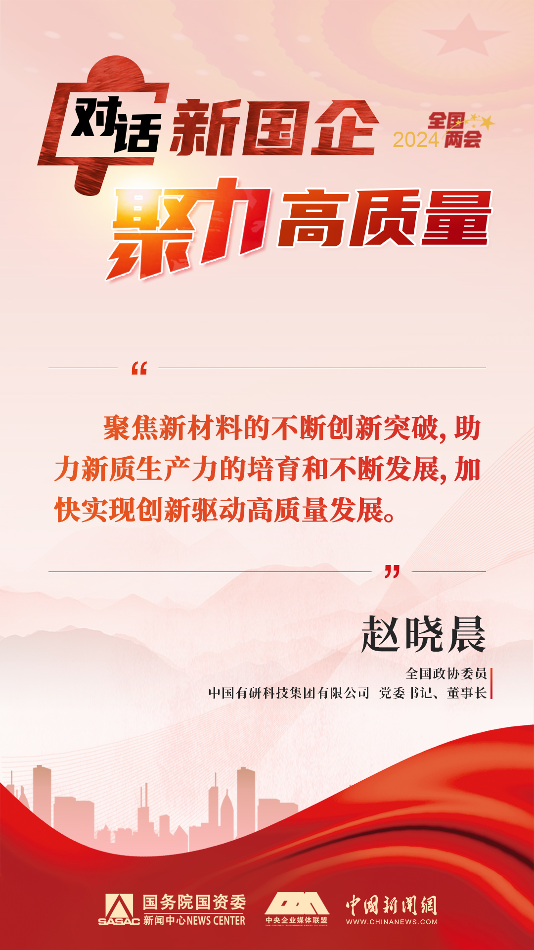 中新網(wǎng)北京3月6日電(記者 張尼) “我理解,科技創(chuàng)新是發(fā)展新質(zhì)生產(chǎn)力的核心要素;新材料突破是戰(zhàn)新產(chǎn)業(yè)、未來產(chǎn)業(yè),是新質(zhì)生產(chǎn)力孕育和發(fā)展的一個重要前提和基礎。” 全國政協(xié)委員,中國有研科技集團有限公司黨委書記、董事長趙曉晨在“對話新國企·聚力高質(zhì)量”系列融媒體訪談中表示,要以新興產(chǎn)業(yè)發(fā)展引領新質(zhì)生產(chǎn)力形成,培育企業(yè)發(fā)展新動能。