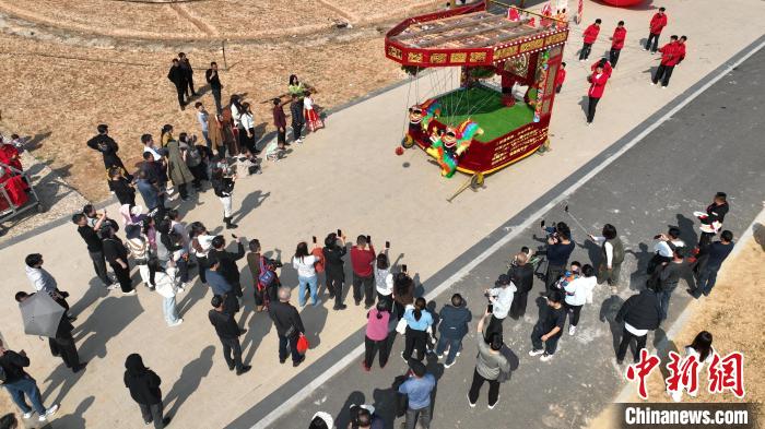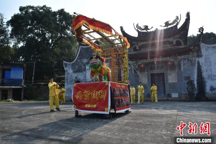 圖為“興賢少年線獅隊(duì)”2024年春節(jié)期間走進(jìn)寧德市蕉城區(qū)洋中鎮(zhèn)芹嶼村表演霍童線獅。褚子強(qiáng) 攝